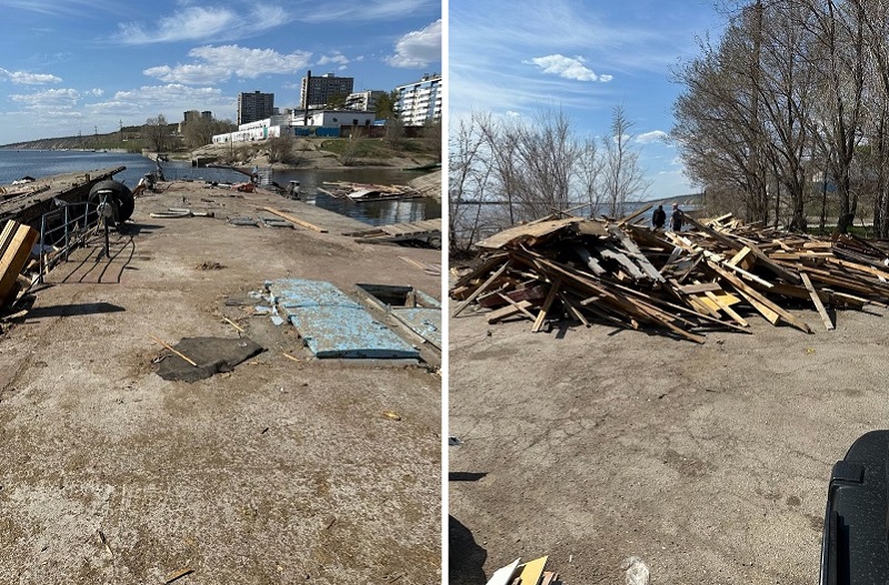 В Тольятти власти разобрались с бывшим плавучим рестораном на набережной Комсомольского района. Подтопленный дебаркадер разобрали.
