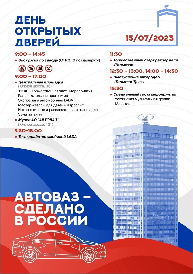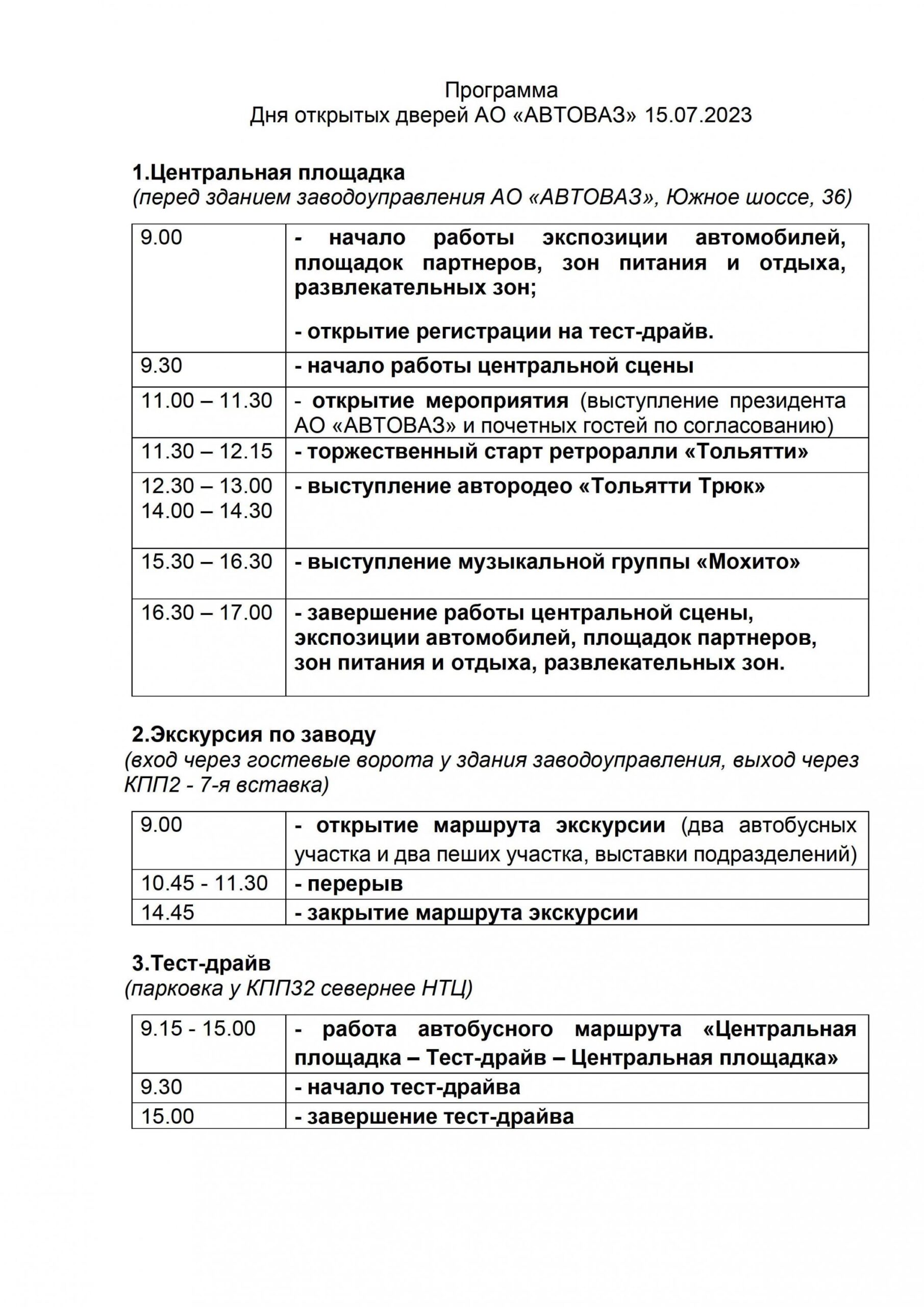 15 июля АВТОВАЗ приглашает на День открытых дверей! Праздник приурочен ко дню рождения предприятия, для многих он является единственной возможностью побывать на крупнейшем производстве автомобилей в России.