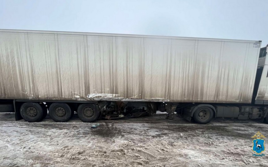 Ранним утром 26 ноября в Самарской области на трассе столкнулись внедорожник и тягач.