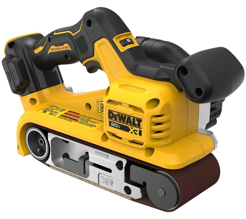 Ленточная шлифмашина Dewalt DCW220B оснащена бесщёточным двигателем и переключателем с функцией регулировки скорости (25 настроек). Скорость движения ленты составляет от 200 до 320 м/мин. По заявлению DeWalt, эта модель идеальна для столярных работ, ремонта и выполнения других крупных работ по шлифовке.