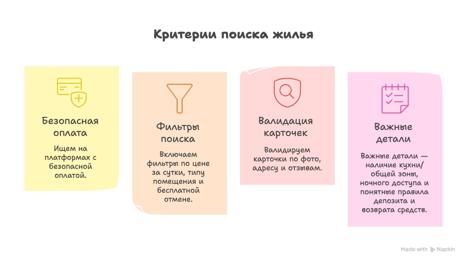 В начале поиска важно спокойно отсеивать рискованные предложения: увод в мессенджеры, просьбы перевести «на карту», слишком низкая цена и «глянцевые» фото без ключевых помещений — это типовые красные флаги. Вопрос не только в деньгах, а в нервах: предсказуемость заселения дороже рубль к рублю при ночном приезде и плотном расписании по час. И здесь платформенные инструменты — защита платежа, ваучер, кнопка «жалоба» — делают реальную погоду в посуточный сегмент.