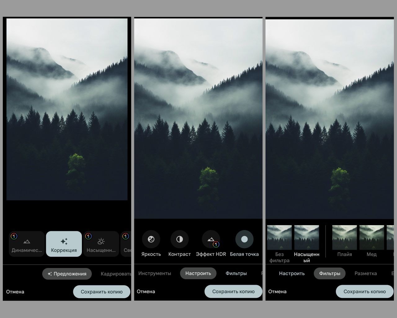 Встроенное приложение, изначально предназначенное для хранения фотографий и обмена ими с другими пользователями. Однако сейчас разработчики добавили набор инструментов для редактирования. Выполнить профессиональную коррекцию с помощью софта не получится, но для быстрой обработки нескольких снимков он прекрасно подойдет. Позволяет обрезать картинку, добавить размытие, удалить шумы и др.