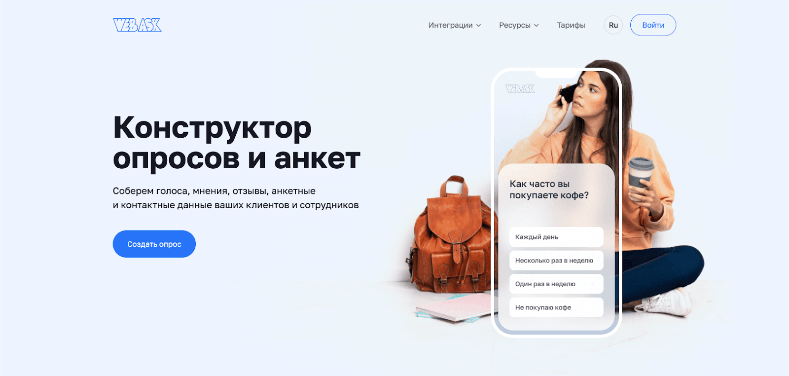 Дальше необходимо выбрать платформу, на которой собственно и будет создаваться опрос. На рынке конструкторов таких платформ вполне достаточно, не будем разбирать все, возьмем, например WebAsk, он отлично подойдет для любых типов опросов, вполне удобен и приятен в использовании.