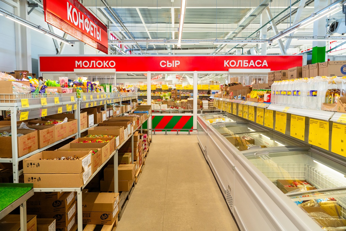 Магазин работает по принципу продсклада: товары расположены в торговом зале на паллетах и стеллажах в заводских упаковках, что позволяет использовать всю площадь торговой точки, не переплачивая за выкладку и дополнительные помещения. Компания сотрудничает с местными и федеральными производителями напрямую, не тратя время и деньги на посредников.