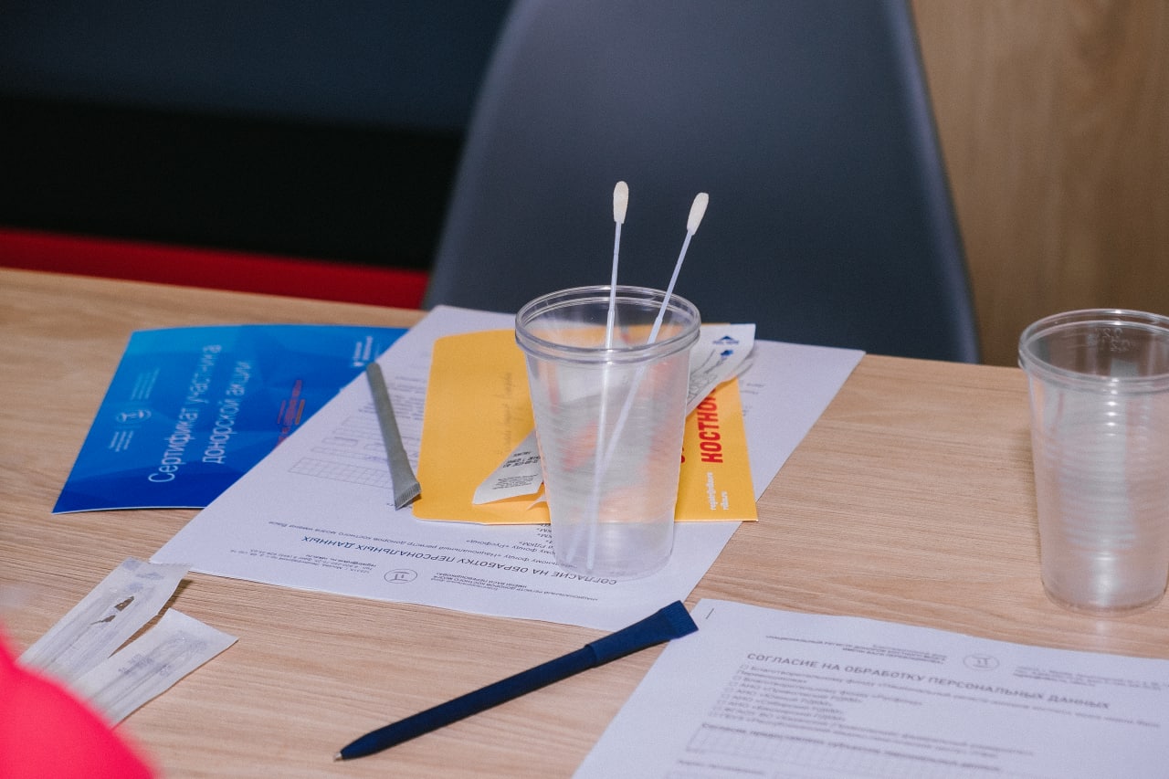 Сделать это можно в примерочной пункта выдачи или дома. В наборе есть инструкция, как правильно взять мазок со внутренней стороны щек — для этого в конверт вложены специальные палочки, похожие на обычные ватные. Также желающий стать донором заполняет анкету и возвращает конверт с палочками и анкетой администратору.