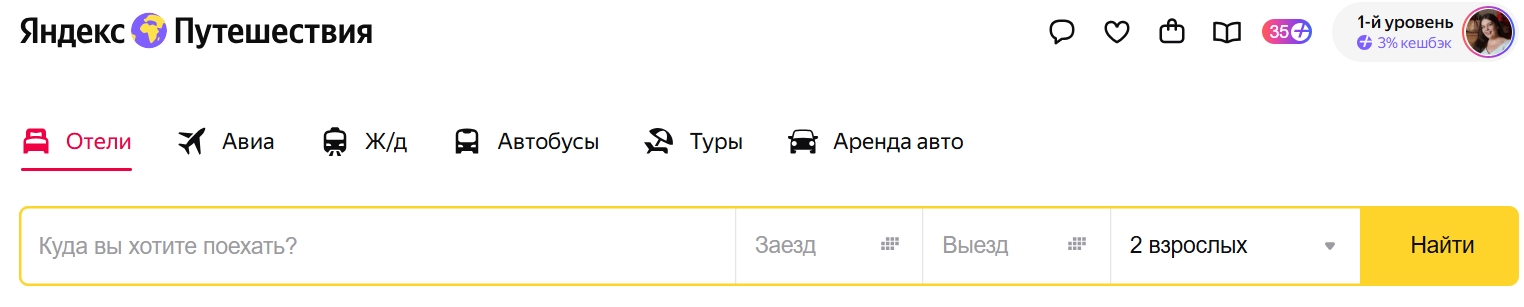 Часть экосистемы Т-Банка, сочетающая удобство бронирования с выгодами банковских программ. Сервис предлагает миллионы вариантов жилья и авиабилетов, а при оплате картой банка начисляется кешбэк до 10%. Платформа особенно популярна среди молодежи и активных пользователей банковских приложений, которые ценят простоту и бонусы. Благодаря интеграции с финансовой экосистемой, все расходы и возвраты отображаются в одном месте. Т-Путешествия также поддерживает рассрочку и предлагает упрощенную форму бронирования — всего три поля, что делает процесс максимально быстрым. Сервис активно развивает мобильное приложение, которое позволяет не только бронировать, но и управлять бонусами, отслеживать статус заказа и получать персонализированные рекомендации.