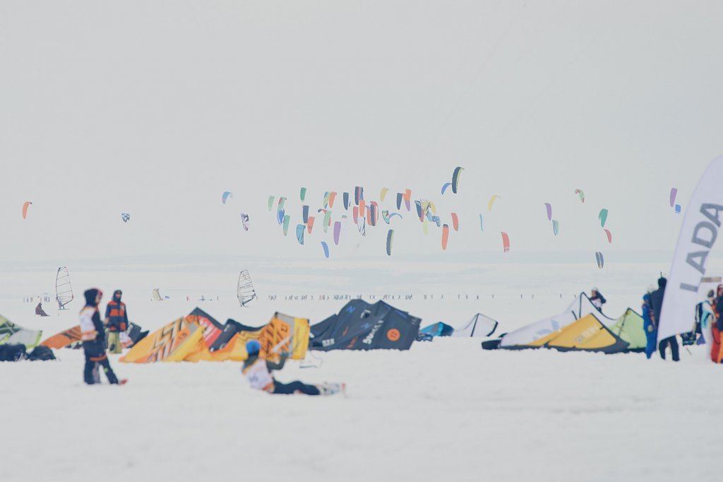 Кайтеры, стартовали первыми при слабом ветре, не превышающем 5 м/с, — неторопливо стартовали и так же неспешно финишировали, уложив кайты вдоль финишной прямой. Впрочем, на этом шалости ветра закончились и началась серьезная борьба, в которой были и спутанные стропы, досадные падения и даже столкновения со знаками и противниками по гонке.