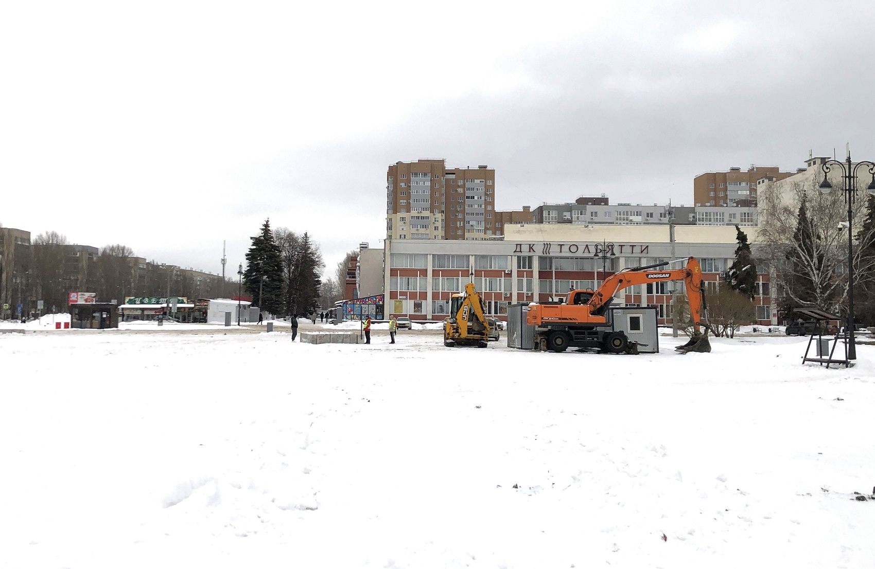 В Тольятти началось комплексное благоустройство Центральной площади. В прошедшие выходные после завершения работ по подготовке площадки подрядная организация приступила завозу техники и монтажу ограждения.