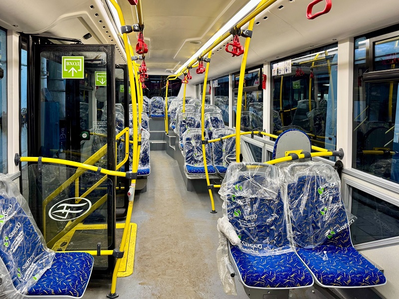 Новые низкопольные троллейбусы имеют 29 посадочных мест. Салоны оборудованы специальными приспособлениями — аппарелями для въезда и выезда инвалидных и детских колясок, а также просторными площадками для их комфортного размещения.