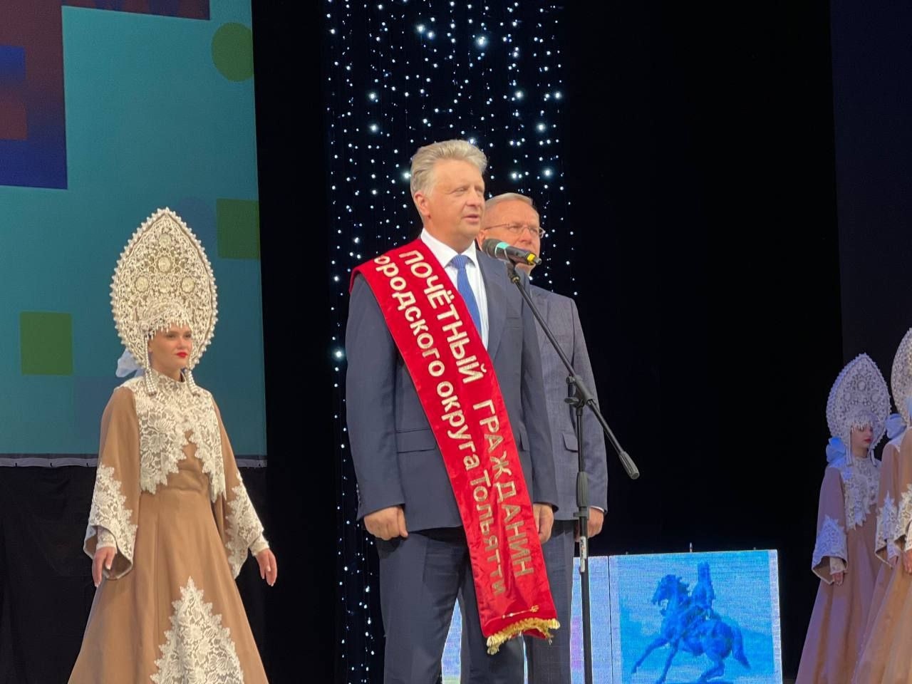 Город чествовал врачей, педагогов, представителей промышленных предприятий, деятелей культуры и искусства – всех, кто своим трудом вносит вклад в развитие Тольятти и области. Традиционно на церемонии вручили знаки почетным гражданам Тольятти, сообщает администрация города. Этого высокого звания за особые заслуги перед городским сообществом были удостоены президент АО «АВТОВАЗ» Максим Соколов и народная артистка России, художественный руководитель театра «Колесо» Наталья Дроздова.
