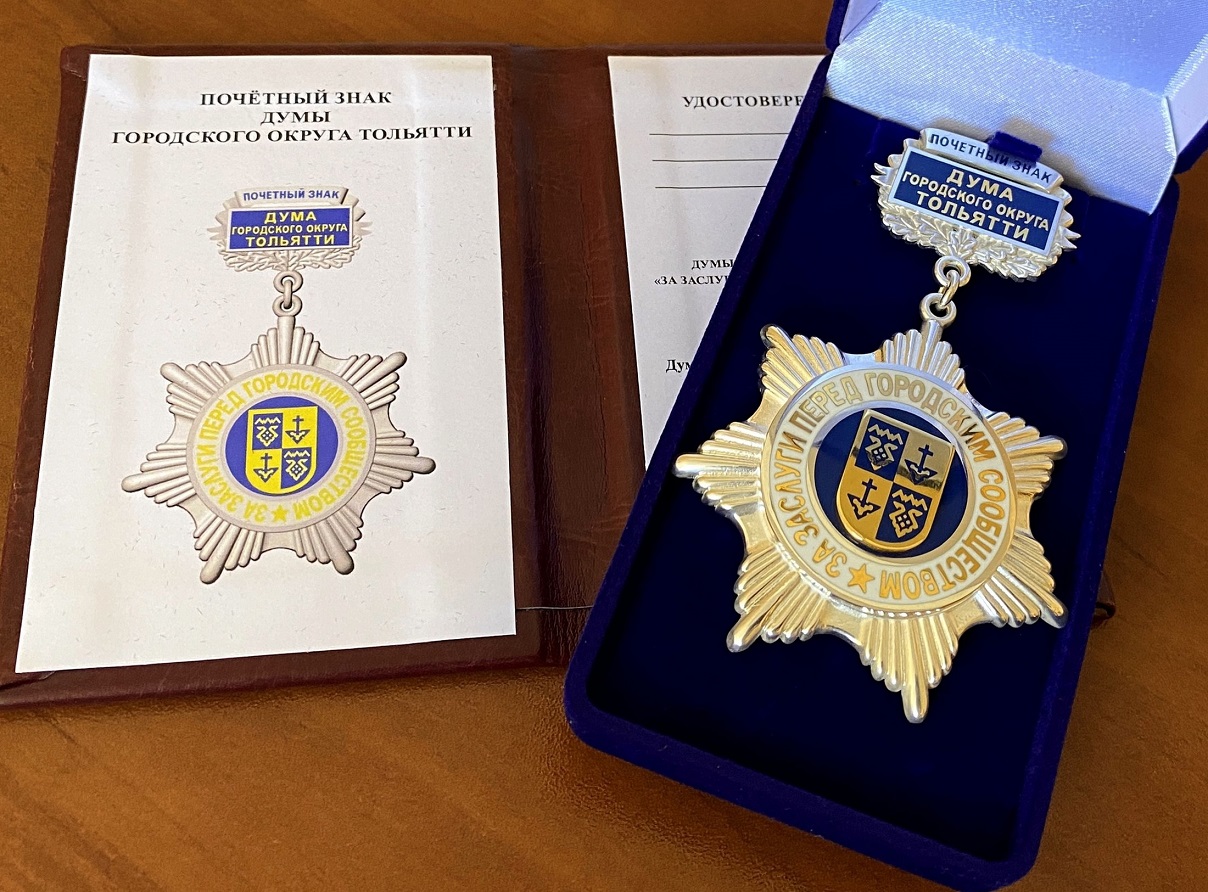 Почетным знаком Думы «За заслуги перед городским сообществом» в этом году наградят пятерых жителей Тольятти. Эта высшая награда городского парламента вручается тольяттинцам, чей вклад в развитие города является значимым и неоспоримым.