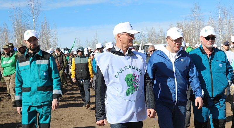 Сотрудники предприятий вместе с членами своих семей сажали деревья в Портпосёлке в районе санатория «Лесное» у мемориального комплекса «Лес памяти» на площади 10 га. Из них 2 га – новые посадки и 8 га — досадка.