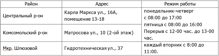 Центры обслуживания клиентов расположены по следующим адресам: