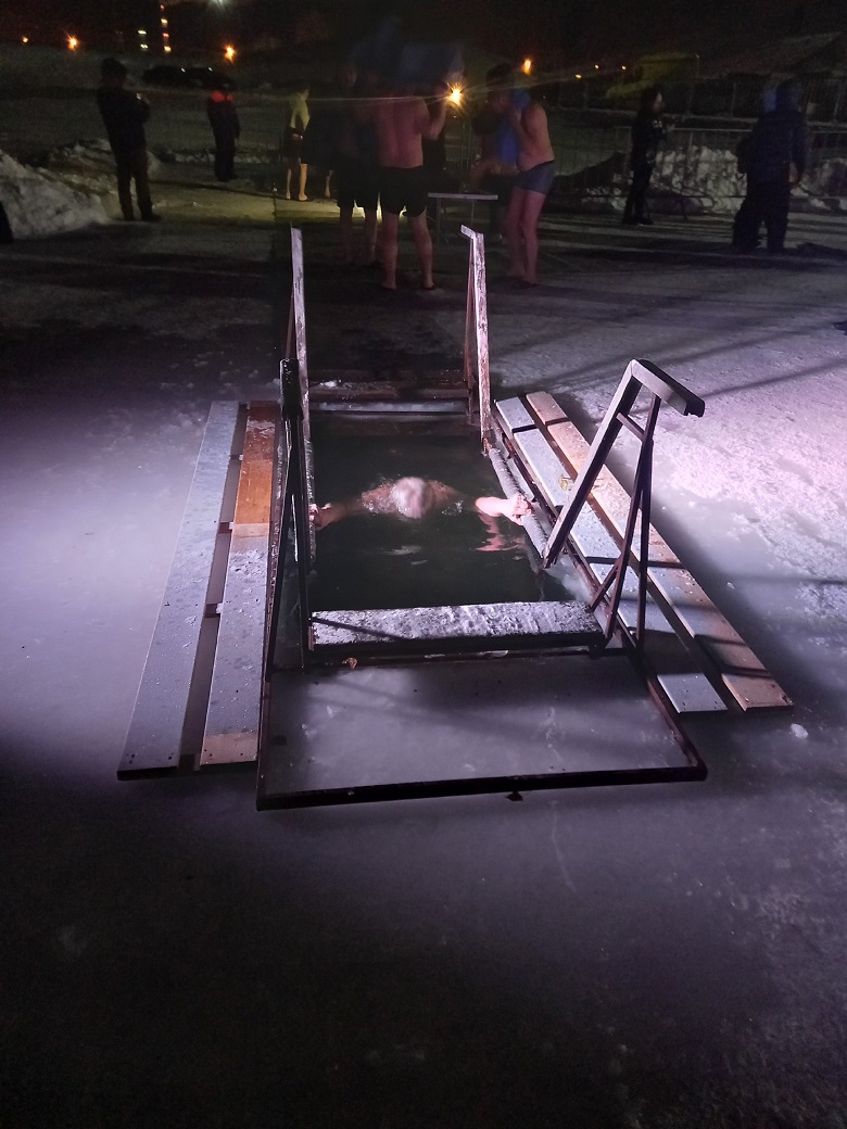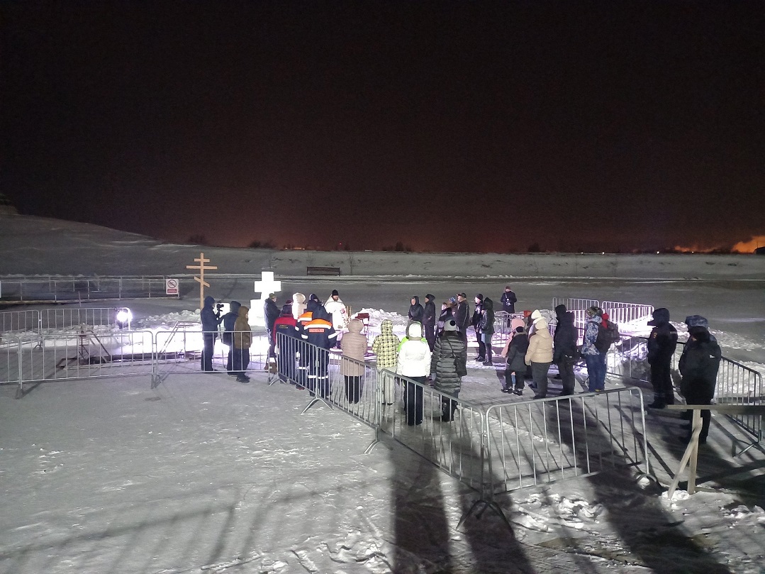 В целях безопасности уже восьмой год подряд крещенские купания проводятся на искусственном водоеме Паркового комплекса с участием сотрудников Центра гражданской защиты, полиции и МЧС. Для удобства горожан здесь подготовлены сразу две купели, смонтированы специальные настилы и трапы для комфортного прохода к водоему, установлены палатки с обогревом для переодевания и световые прожекторы. В первые часы крещенской ночи купели посетило свыше 230 горожан.