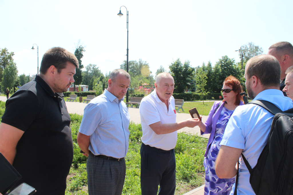 В парке Центрального района в совещании принял участие зампредседателя думы Александр Денисов. Он отметил, что содержание таких объектов всегда на виду у жителей и дюбые огрехи подрядчиков нужно оперативно устранять.