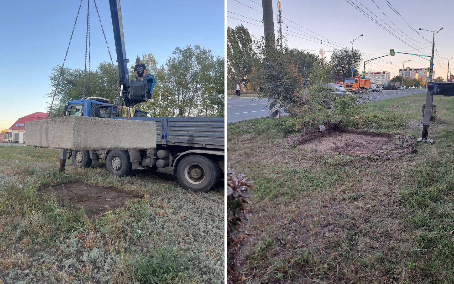 В Тольятти убирают бетонолом на участках, где были снесены незаконные торговые объекты и рекламные конструкции.