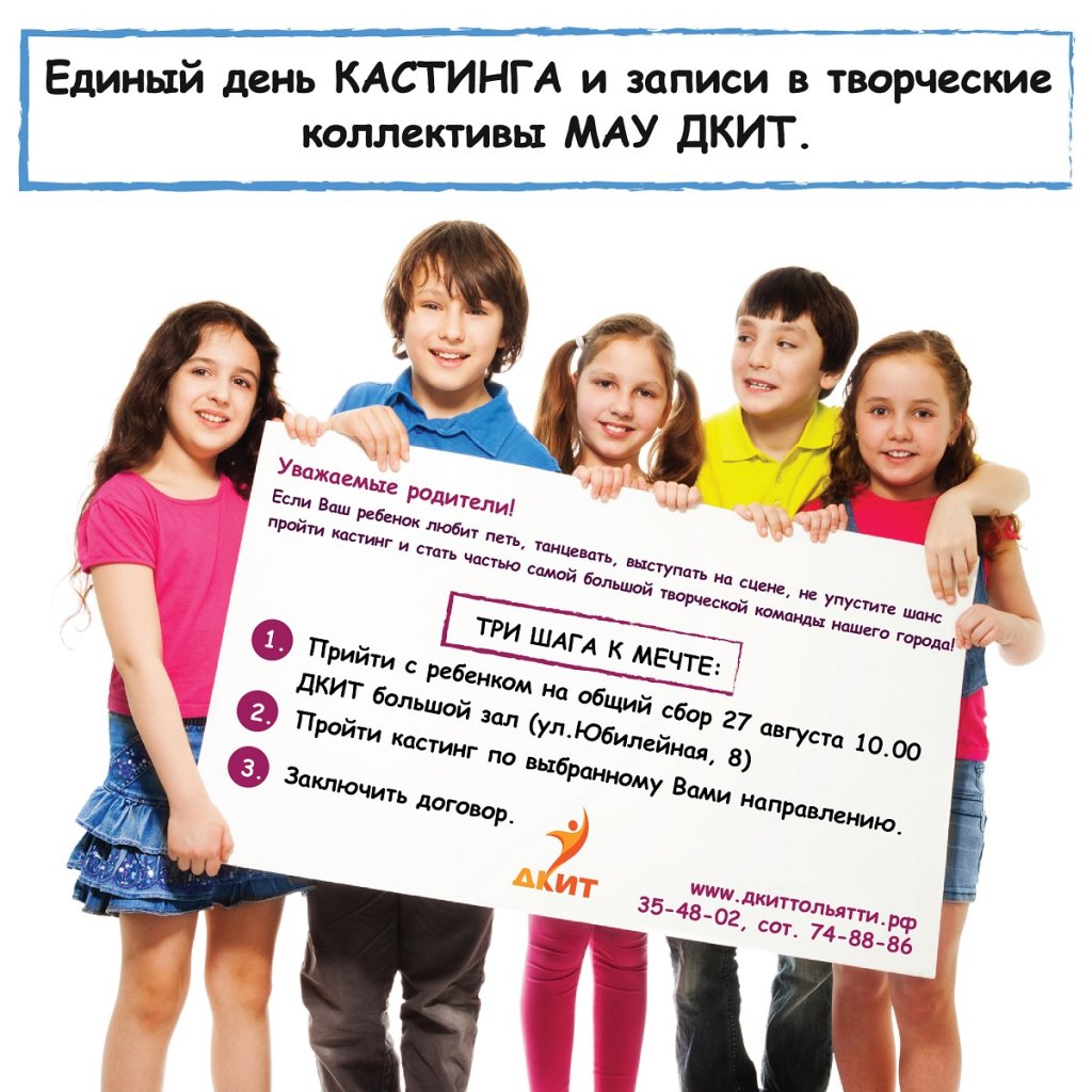 Если ваш ребенок любит, петь, танцевать и выступать на сцене, не упустите свой шанс. Приходите в последнее воскресенье августа в ДКИТ, пройдите отбор и тогда именно ваши дети станут частью самой большой творческой команды Тольятти.