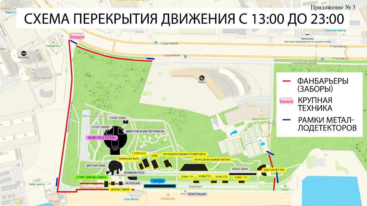 - с 6:00 до 23:00 по ул. Физкультурная.