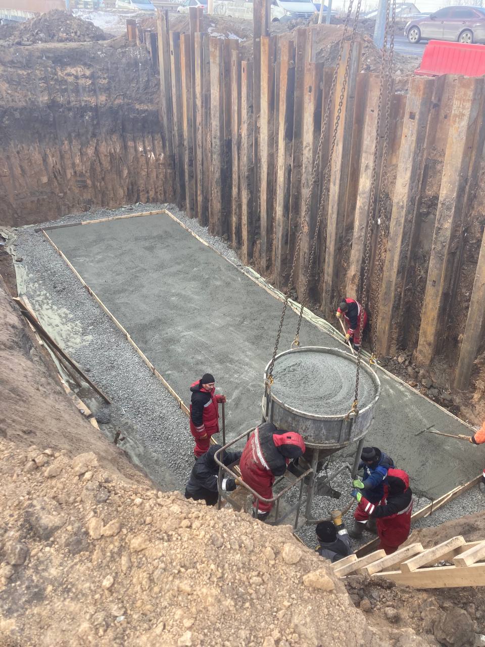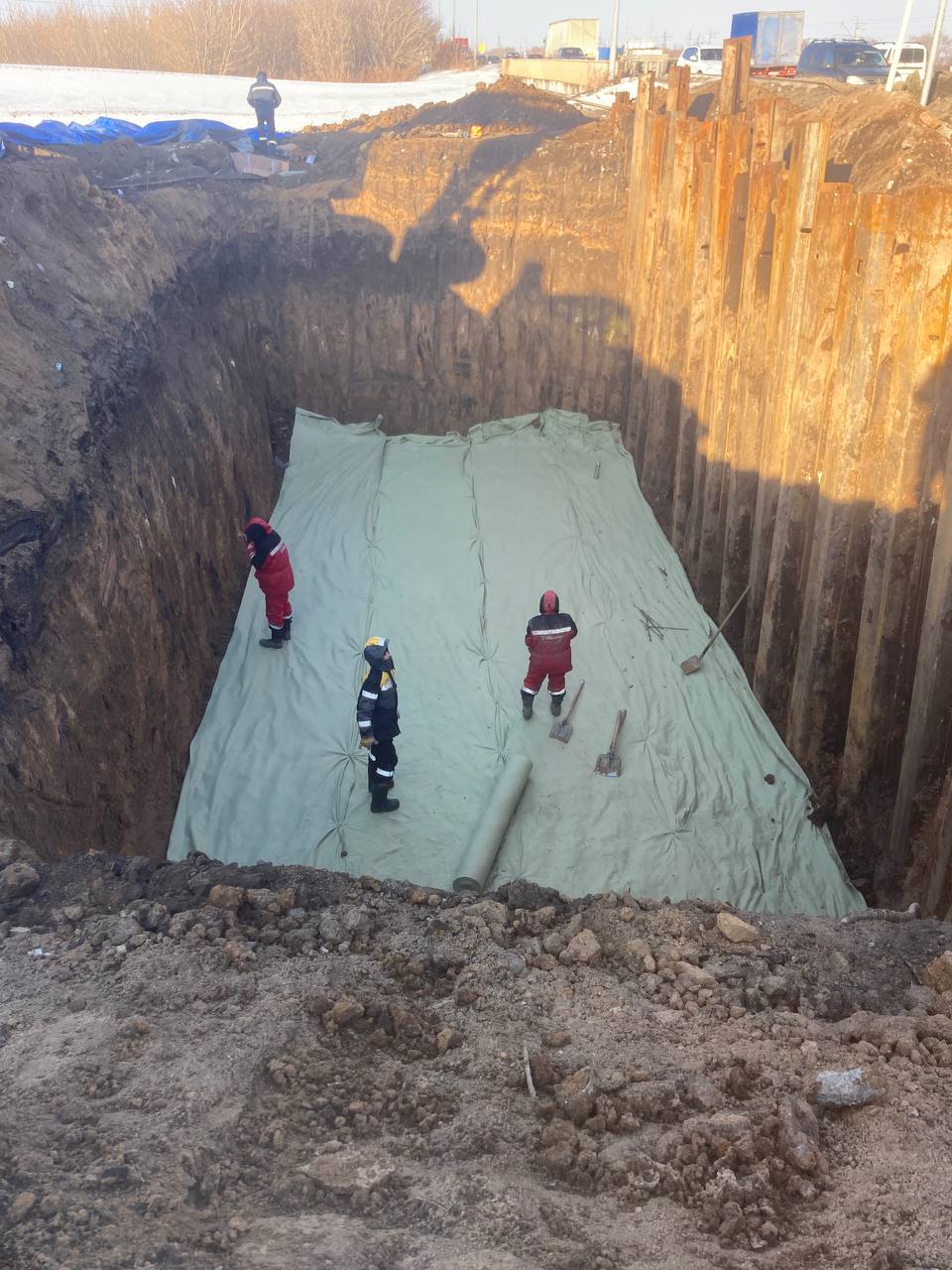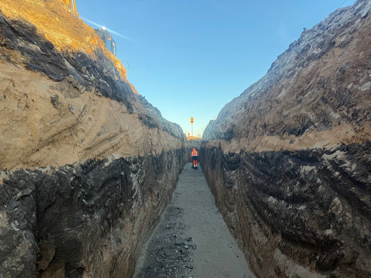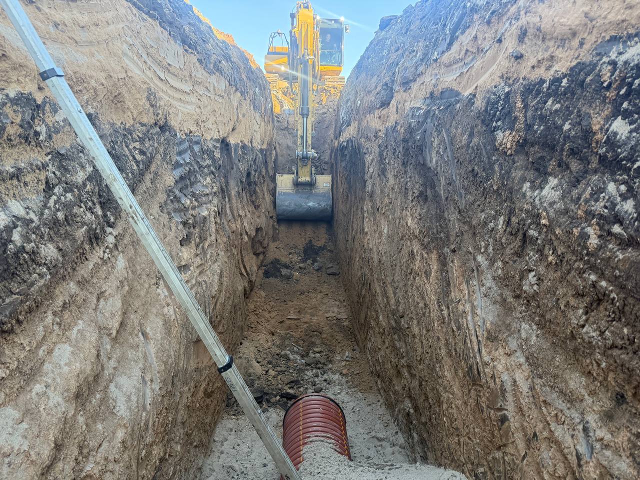 Специалисты обустраивают ливневку с накопительными резервуарами и очистными сооружениями. Также подрядчик выполняет переустройство электросетей с переносом их под землю.