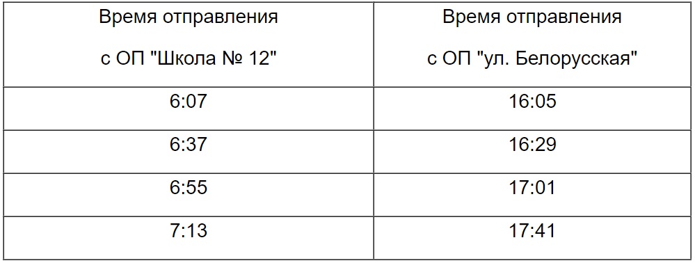 Расписание работы маршрута № 40 «ОП ул. Белорусская ОП «Школа № 12» (будни):