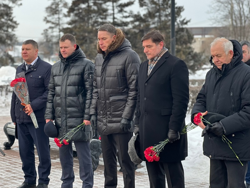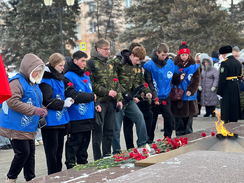 Присутствующие почтили память жителей блокадного Ленинграда минутой молчания и возложили цветы к Вечному огню.