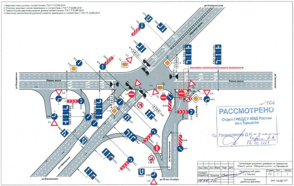 С Южного шоссе, как и прежде, будет доступен правый поворот на ул. Автостроителей. А также заработает правоповоротный съезд на Офицерскую. Ещё появится возможность при движении в направлении Волжского Автозавода с Южного шоссе повернуть налево на ул. Офицерскую.