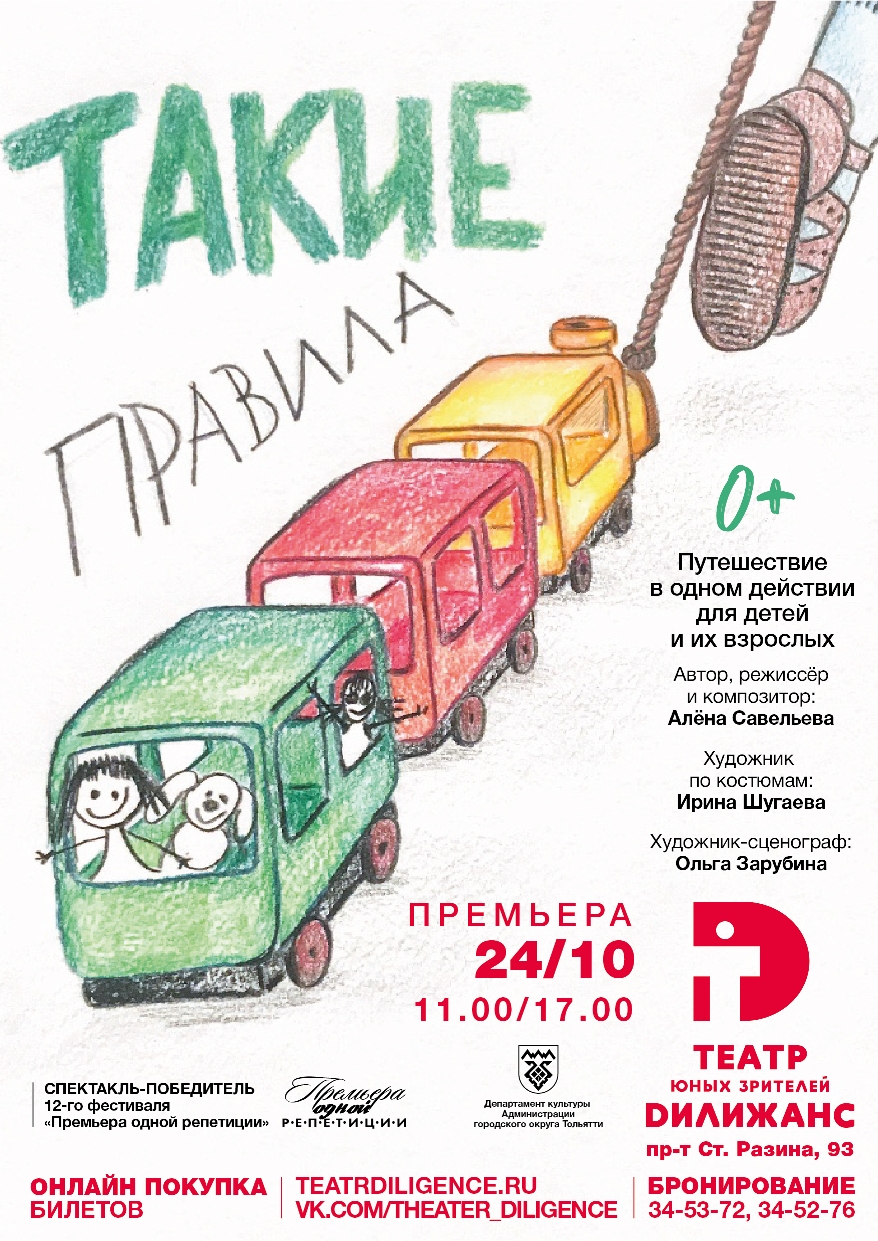 В октябре театр юного зрителя «Дилижанс» представит зрителям две премьеры для семейной аудитории. Это авторская постановка Алёны Савельевой «Такие правила», победившая на 12-м фестивале «Премьера одной репетиции» по итогам зрительского голосования, и пластический спектакль Екатерины Зубаревой «Стойкий оловянный солдатик» по сказке Г.Х. Андерсена.
