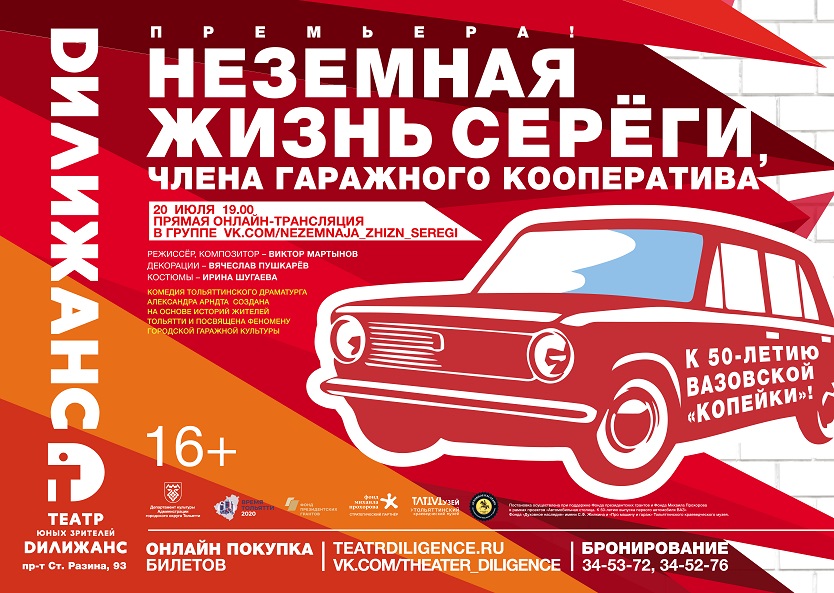 20 июля, в день рождения Волжского автозавода, театр «Дилижанс» представит онлайн-премьеру комедии тольяттинского драматурга Александра Арндта «НЕЗЕМНАЯ ЖИЗНЬ СЕРЁГИ, члена гаражного кооператива» (16+).