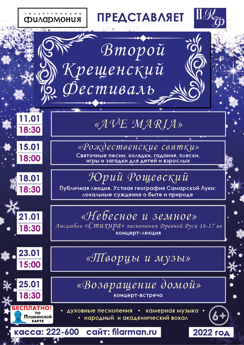 В Тольяттинской филармонии открывается второй Крещенский фестиваль. Он пройдет с 11 по 25 января и включает шесть концертов.