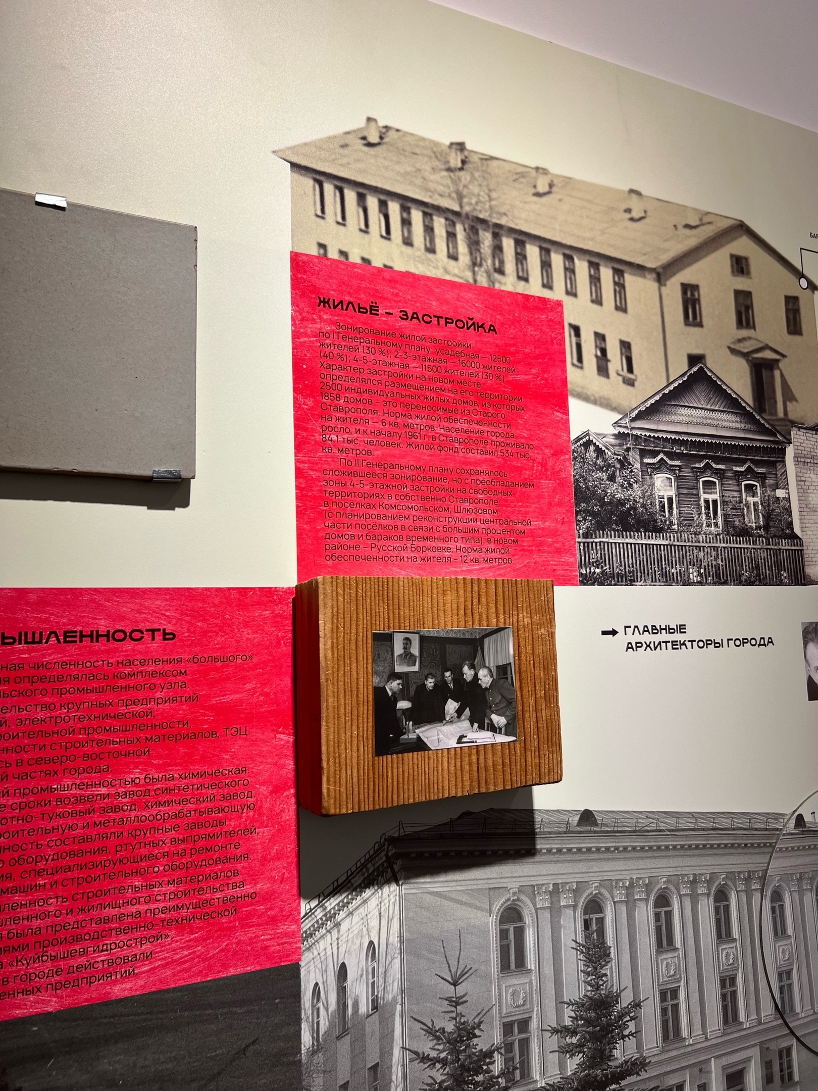 Также на экспозиции можно узнать интересные факты, как интенсивно рос Тольятти, в чем его экспериментальность, посмотреть предметы, которыми могли пользоваться архитекторы. О разных пространствах Тольятти можно узнать из «первых уст» — в интервью с архитекторами города.
