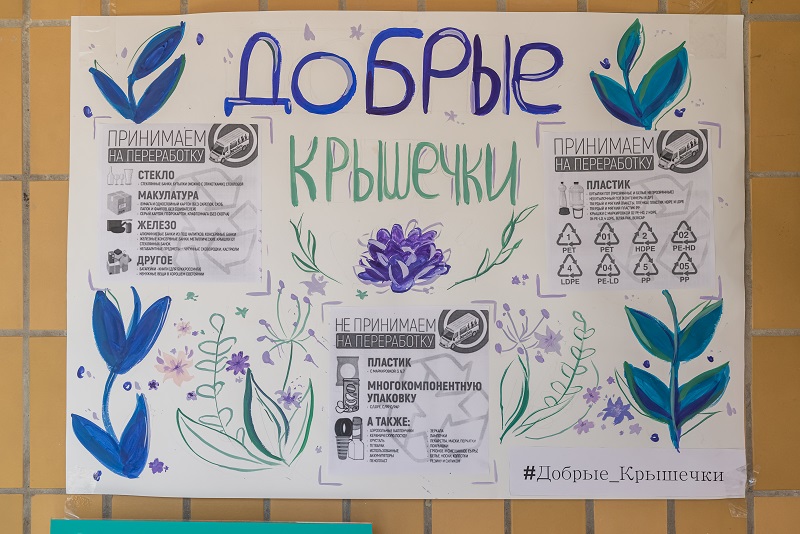 В тольяттинской школе №94 после экоурока сотрудники регоператора установили накопитель «Добрые крышечки». Ребята готовились к событию несколько недель. За это время они собрали с десяток пакетов с пластиковыми отходами и сразу же высыпали их в контейнер. А стену над накопителем украсили информационным плакатом.