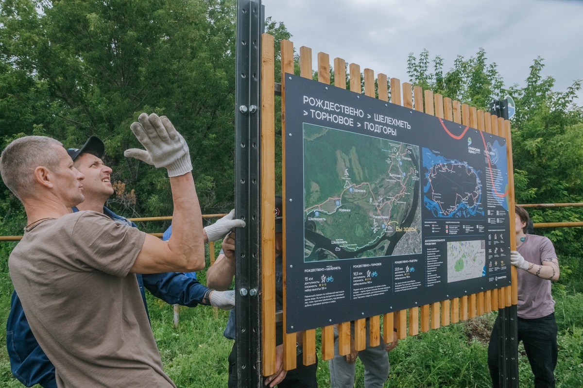 Несколько дней назад случилось еще одно важное событие: на тропе появились информационные стенды — с подробной картой, маршрутами и подсказками в селах, а также вспомогательные таблички на пристанях — в местах прибытия транспорта. Всего было установлено 11 больших стендов на отрезке от Рождествено до Гавриловой Поляны при партнерской поддержке компании «Симметрика». Метки и столбики, которые делают волонтеры, теперь подкреплены и профессиональными конструкциями, сообщает пресс-служба нацпарка «Самарская Лука».