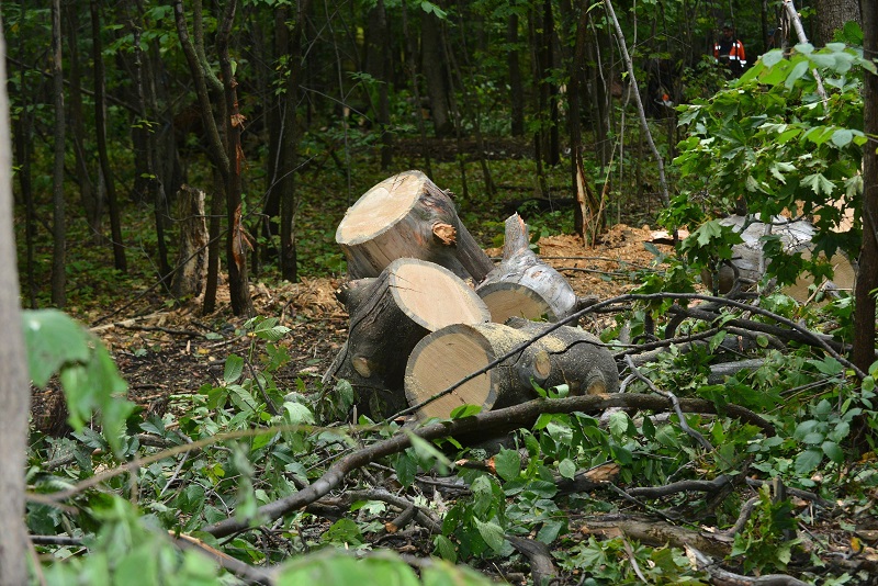 В нескольких пабликах появились фото, на которых запечатлена техника и порубочные остатки.