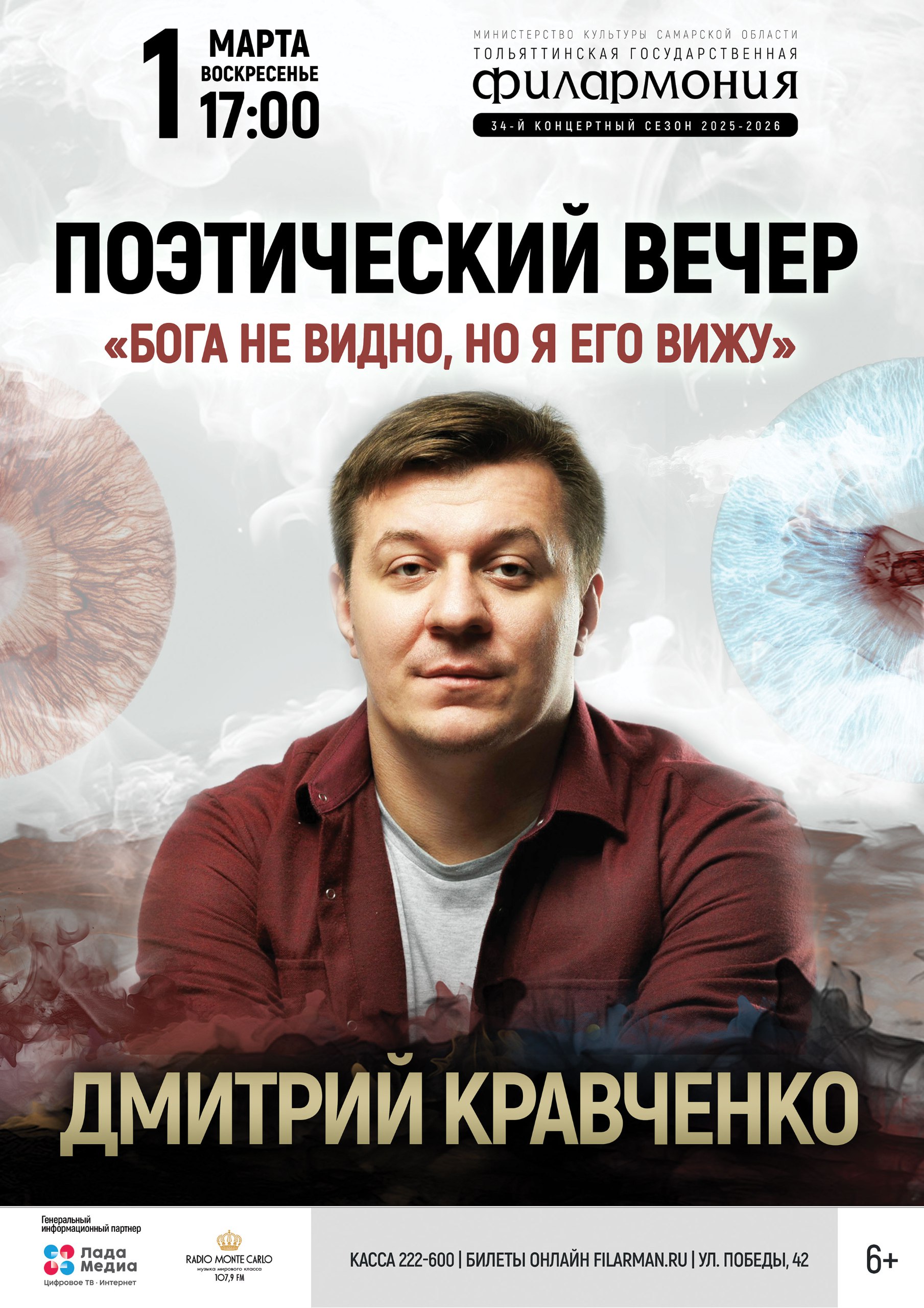 Пронзительные стихи Дмитрия Кравченко – о духовной жизни, любви и красоте мира стали вирусными в Сети. Вечер обещает глубокие эмоции, «взрывающие» душу тексты, которые затрагивают самые глубокие струны души, о вере, любви, Боге в мелочах жизни – в улыбке, в яблоках, в закате… Заставляют по-новому взглянуть на веру и реальность.