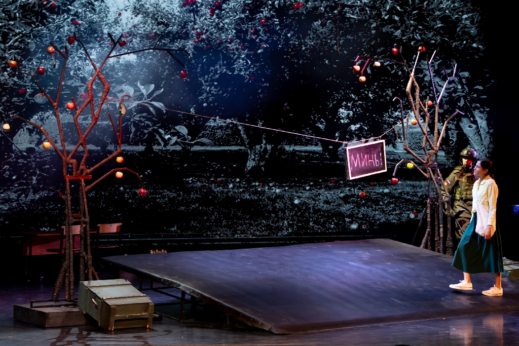 Главный герой пьесы – сержант Иван Ермаков, сапер, прошедший несколько горячих точек. Он – доброволец, защитник Донбасса, из тех, кто уже не может жить без предельного напряжения военной жизни, необходимости решать зачастую невыполнимые задачи. Во время разминирования территории одной из донбасских школ в праздник Яблочного Спаса он знакомится с учительницей Марией, которую несколько месяцев до этого бросил жених, сбежавший за границу от призыва в армию. За Марией пытается ухаживать старший лейтенант Пасленов, непосредственный командир сержанта Ермакова. Пасленов – антипод главного героя, современный карьерист, использующий нахождение в прифронтовой зоне для продвижения по службе. Конфликт Ермакова и Пасленова – это противостояние мировоззрений, жизненных смыслов.