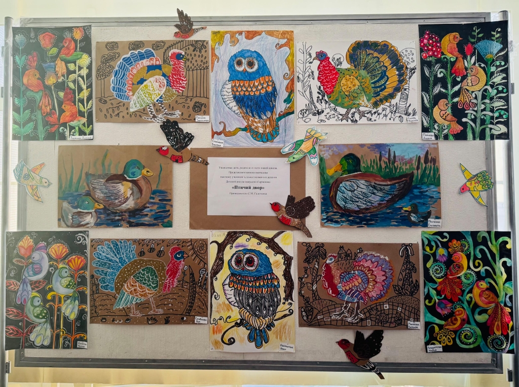 В зале детской школы искусств ожил настоящий «Птичий двор» – так названа выставка, открывшая свои двери для юных художников и их многочисленных почитателей. Собрав под одной крышей десятки работ, выполненных в самых разнообразных техниках, экспозиция представляет собой удивительное путешествие в мир пернатых фантазий. От реалистичных портретов грациозных лебедей до озорных птенцов, выглядывающих из гнезд, – каждый рисунок дышит жизнью и наполнен искренней любовью к природе. Разнообразие стилей и подходов поражает: акварельные полотна, наполненные светом и воздушностью, передают нежность весеннего пения, а гуашевые работы, сочные и яркие, словно запечатлели краски щедрого лета.