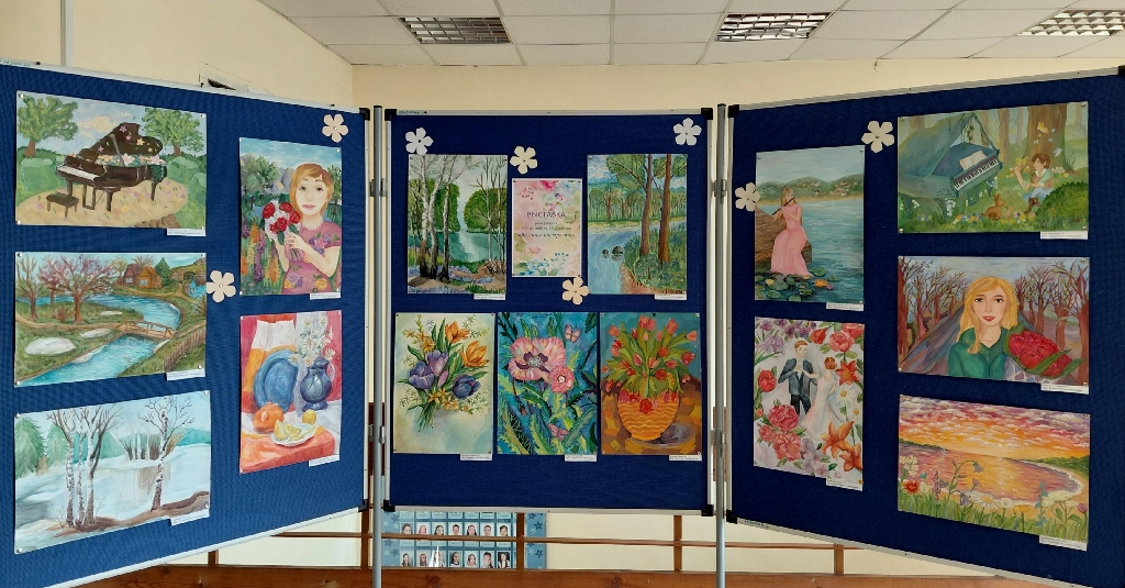 честь праздника Весны в фойе второго этажа школы открылась выставка
