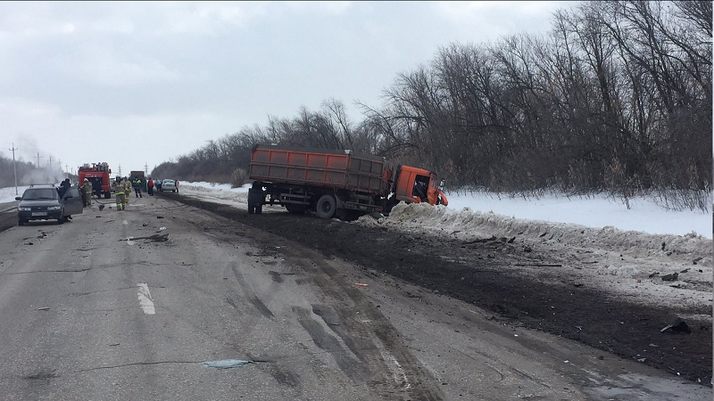 ДТП произошло в 16:00 на автодороге Самара — Волгоград — Осинки – Безенчук. После столкновения с «КАМАЗом» легковой «Мицубиси» загорелся, автомобиль получил страшные повреждения, находившиеся в нем люди не выжили. Еще один человек был доставлен в больницу.