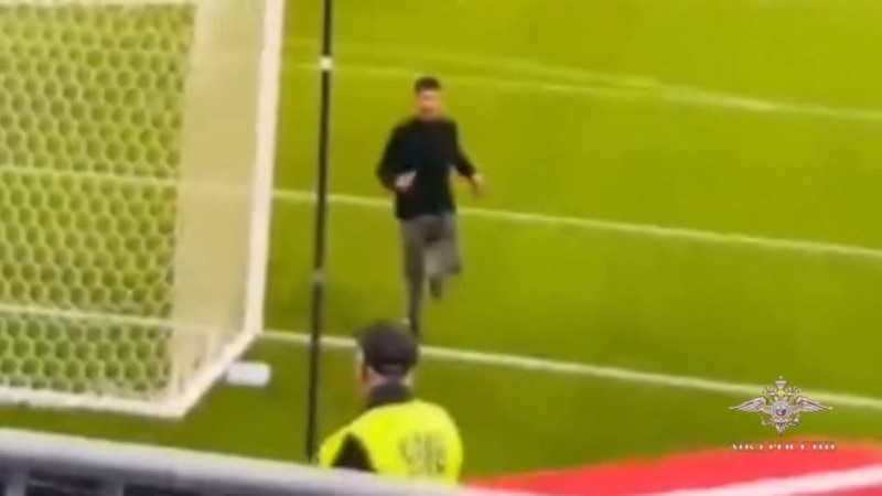«Гражданин одного из государств ближнего зарубежья, присутствуя на игре в качестве зрителя, преодолел ограждение и проник на поле, создав препятствие для продолжения матча. Работники стадиона не дали правонарушителю скрыться и передали сотрудникам полиции», — сообщила официальный представитель МВД России Ирина Волк в телеграм-канале.