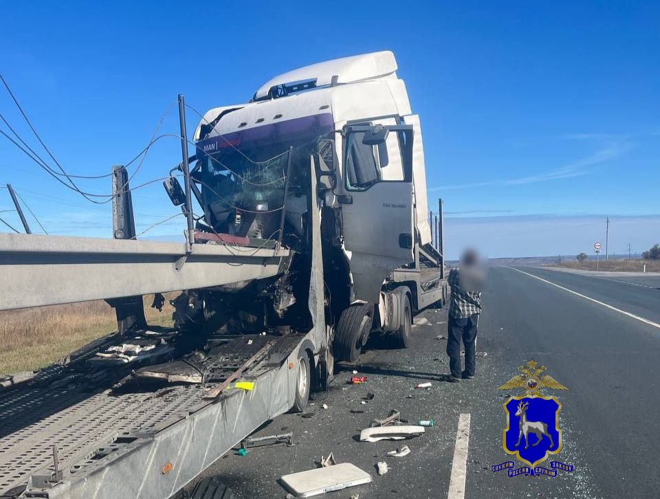 На 1108 км автодороги 63-летний водитель тягача MAN совершил наезд на стоящий на разгрузочной полосе автовоз Foton, сообщает областное МВД. Водитель грузовика MAN отказался от медпомощи. 51-летний водитель второго тягача не пострадал.