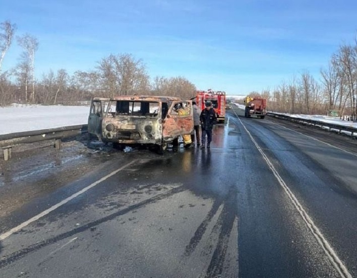 5 февраля в Самарской области на трассе М-5 произошел пожар. Прямо по время движения загорался автомобиль УАЗ.