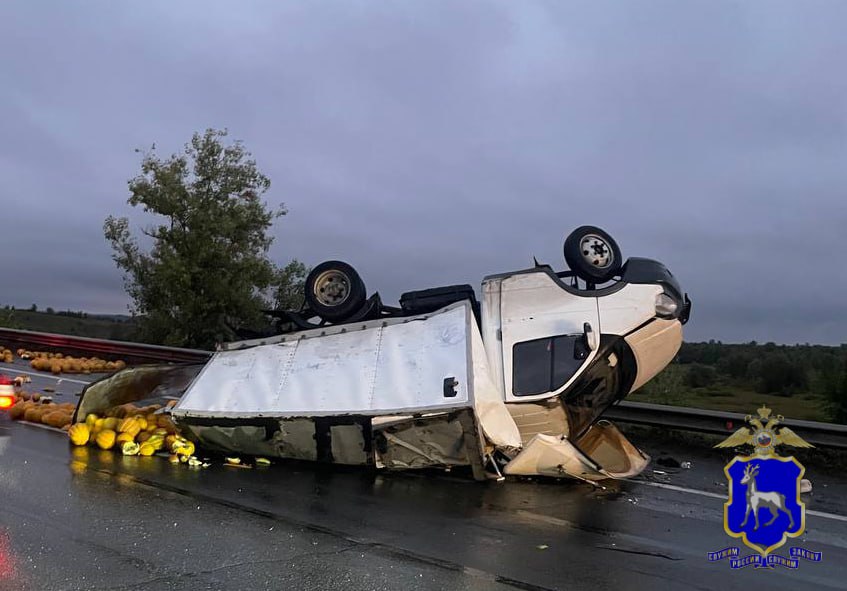 По данным регионального МВД, на 1027 км трассы в 18:20 перевернулся водитель «Газели», груженной овощами. Через 20 минут там же произошло столкновение автомобиля ВАЗ-2110 и большегруза. Прицеп тягача также опрокинулся на дороге.