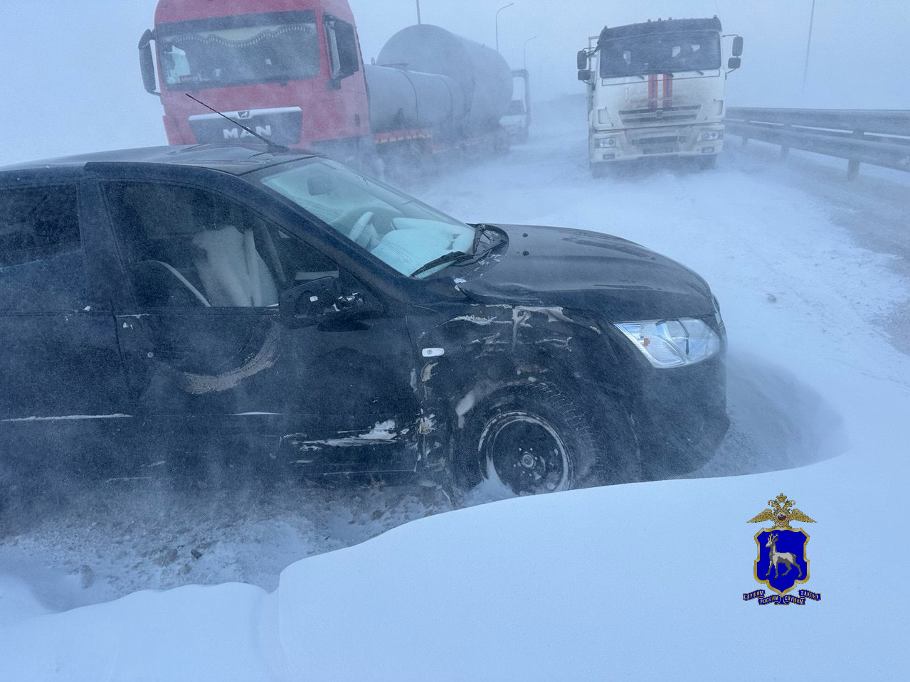 Сотрудники полиции устанавливают все обстоятельства ДТП.