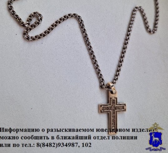 В связи с тем, что цепочка с крестиком, со слов работников ломбарда, реализованы неустановленным гражданам, оперуполномоченные продолжают мероприятия по розыску похищенных украшений. Информацию можно сообщить в ближайший отдел полиции или по телефонам: 8(8482)934987, 102.