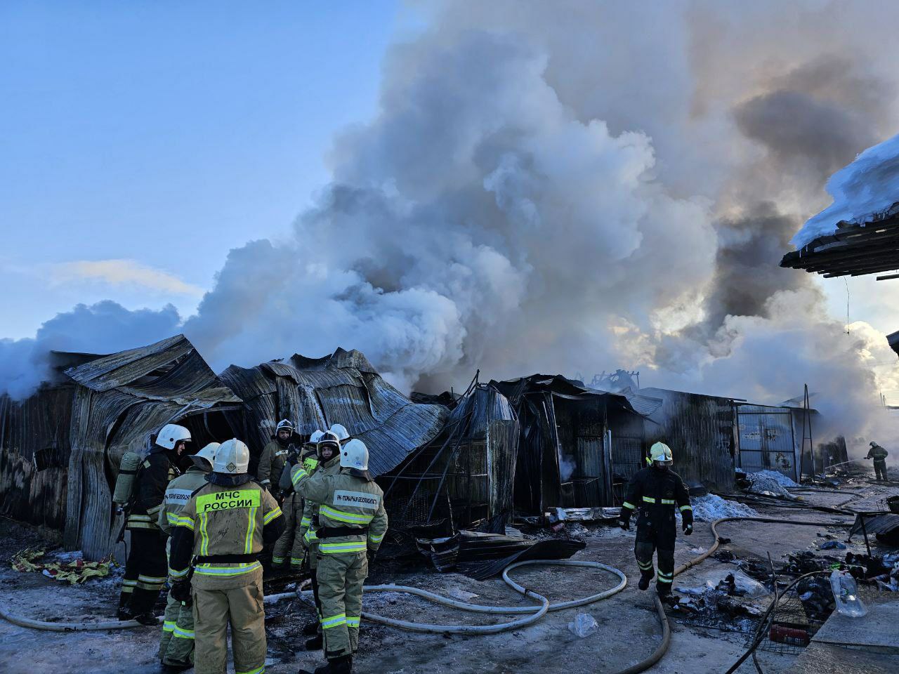 Сообщения о возгорании стали поступать около 9:30. Пожарно-спасательные подразделения привлечены по повышенному рангу вызова – Пожар №2.