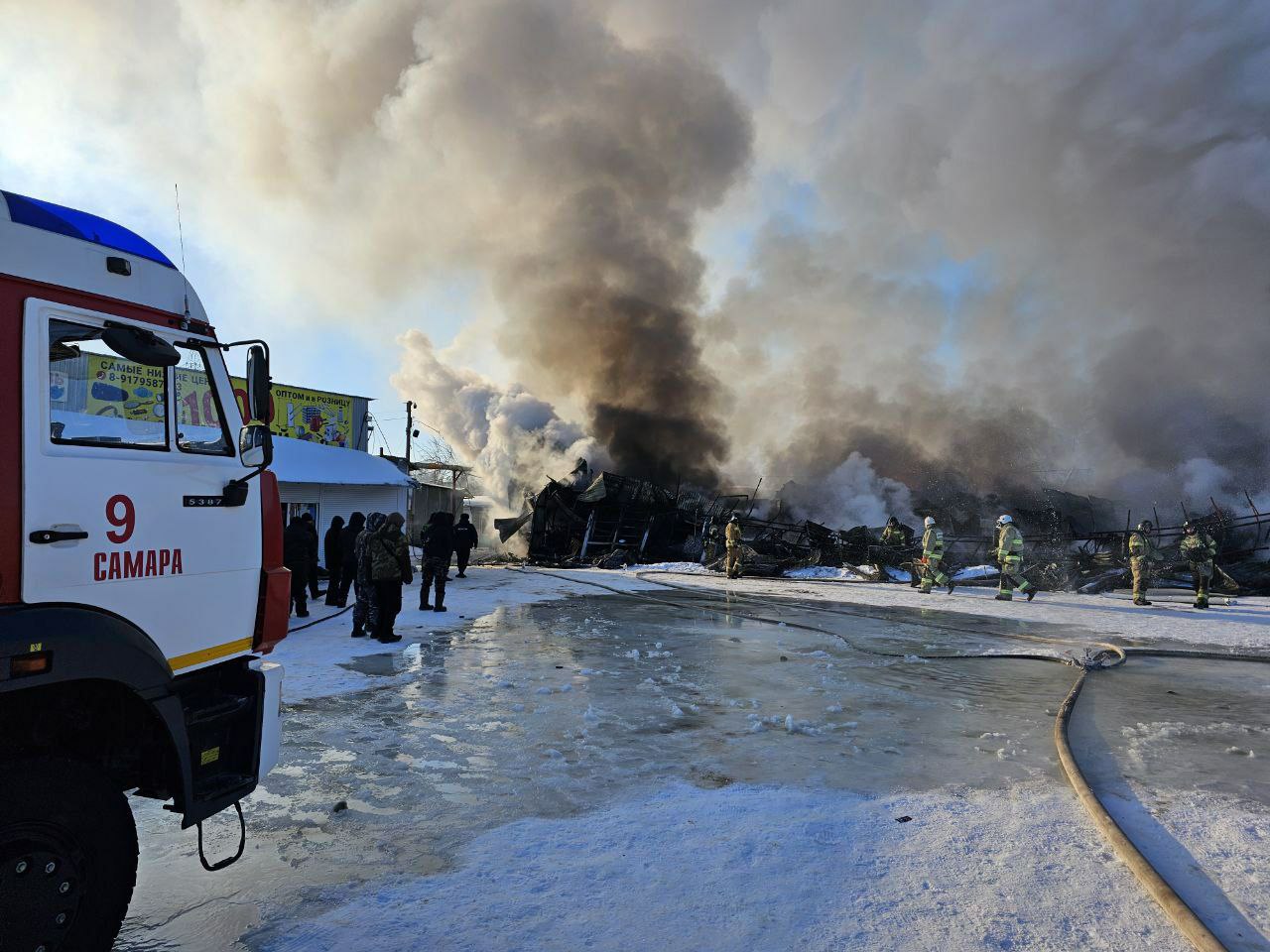 Утром 22 января в Самаре загорелся Кировский рынок. Сейчас на объекте работают 80 огнеборцев, им удалось локализовать пожар.