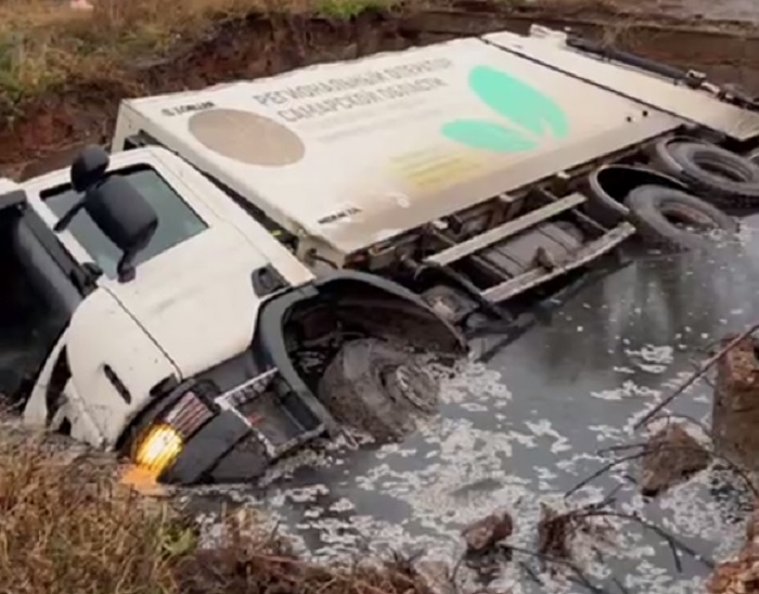 Утро 23 октября в Самаре началось с мусорного инцидента, в поселке Рубежный в выгребную яму провалился мусоровоз.