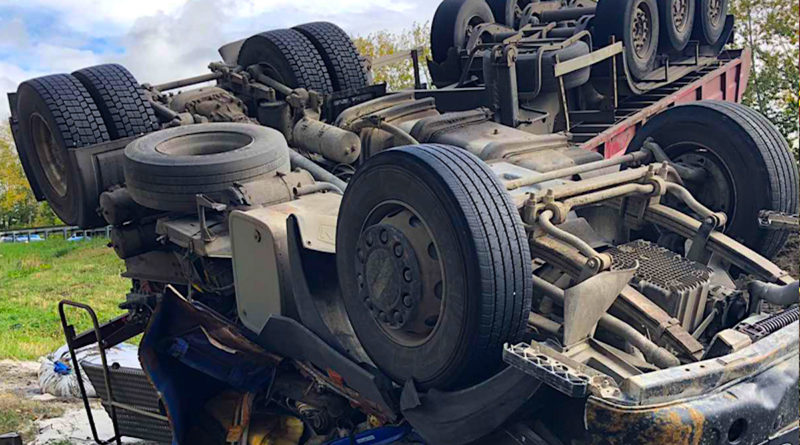 В Самарской области на М-5 перевернулся тяжеловоз, водитель погиб