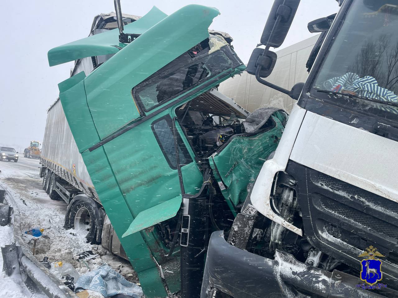 Следом ехал другой тягач Mercedes с полуприцепом. Он столкнулся развернувшимся грузовиком. В этот же момент со стороны Тольятти ехал большегруз MAN с полуприцепом. Он врезался в один из тягачей, попавших в ДТП.