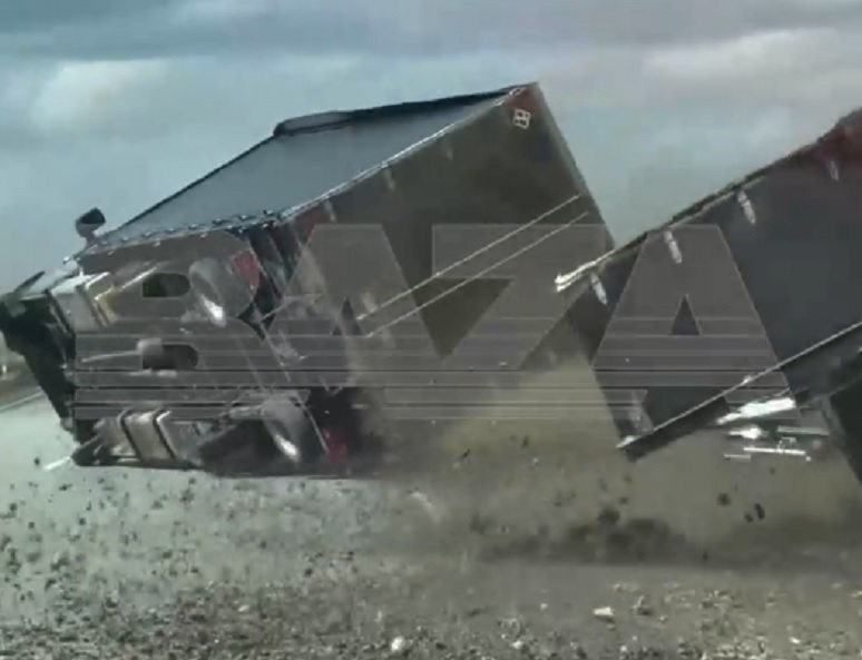 Инцидент произошел в районе села Утёвка, сообщает телеграм-канал Baza. Боковой ветер оторвал часть прицепа, который развалился в воздухе и улетел в кювет. Грузовая «Газель» также перевернулась. Судя по видео, прицеп был пустым. Водителю пришлось собирать разлетевшиеся вещи и документы по всему полю.